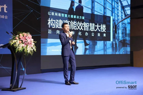 廈門億聯(lián)通訊技術(shù)有限公司大中華區(qū)技術(shù)總監(jiān)吳東陽帶來《全場景智慧辦公》的主題分享。吳總監(jiān)重點介紹了億聯(lián)新推出來整個智慧辦公核心的解決方案,圍繞空間即如何提高坪效;圍繞人效即如何提高溝通協(xié)作能力,自智慧會議室、訪客、共享工位、辦公空間及安防、固定資產(chǎn)等七大核心能力模塊,再結(jié)合音頻、視頻、IM辦公協(xié)同等為企業(yè)全方位打造智慧大樓給出綜合解決方案。