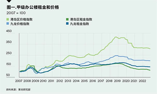 香港核心區甲級寫字樓租金有見底跡象,今年下半年租金有望反彈