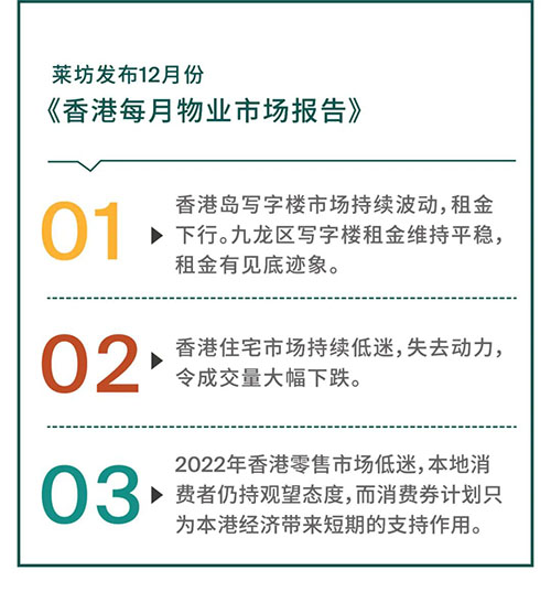 展望未來,預計到2025年,350萬平方英尺的新寫字樓供應將投入港島區的寫字樓市場,主要集中在中環和鲗魚涌。加上如今的高空置率,預計寫字樓租金將面臨進一步的壓力且繼續下行。我們預計2023年寫字樓需求將持續低迷,全年港島區整體租金將下跌3%至5%。