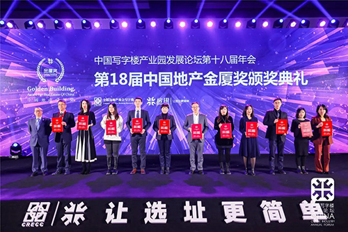 在中國寫字樓產業園發展論壇第十八屆年會上,2021年第十八屆中國地產金廈獎重磅揭曉,并舉辦了盛大的頒獎典禮。首鋼園、華樾中心、遠洋國際Ⅱ期、北辰世紀中心等獲得2021年度優秀項目,中海商務、首創高科等獲得2021年度優秀企業和優秀園區,inCreate自圖、奧的斯電梯等獲得2021年度優秀部品。