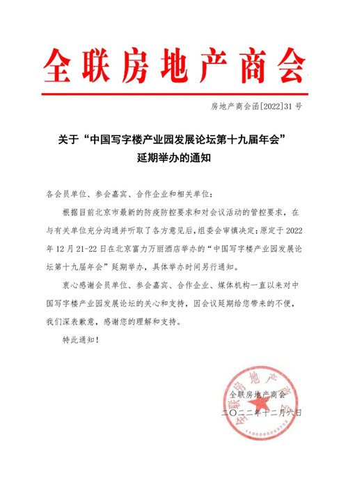 目前,中國寫字樓產業園發展論壇第十九屆年會各項籌備及組織工作正常進行中,中國地產金廈獎申報評選工作同步進行,歡迎您繼續關注年會動態。