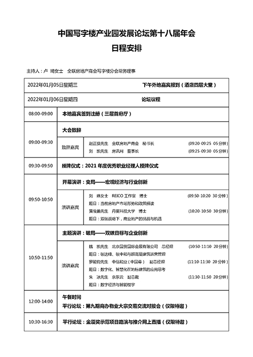 [提要]2022年1月6日,中國寫字樓產業園發展論壇第十八屆年會在北京富力萬麗酒店啟幕。主題為"變局與破局:商業地產的下一個十年"。