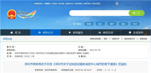 深圳市關(guān)于加快建設(shè)國際消費中心城市的若干措施