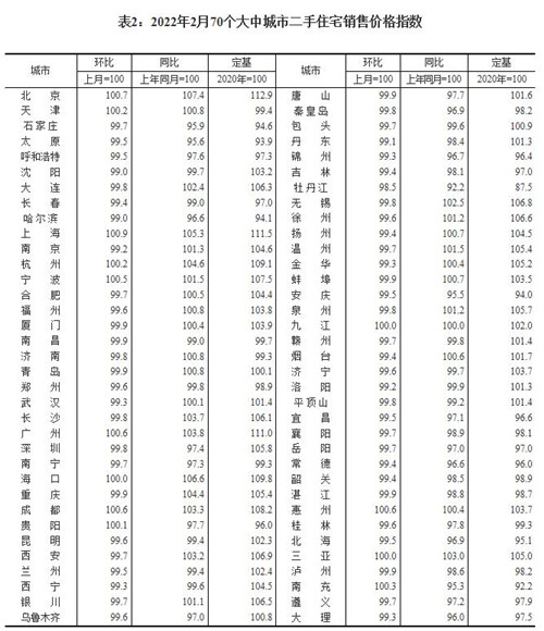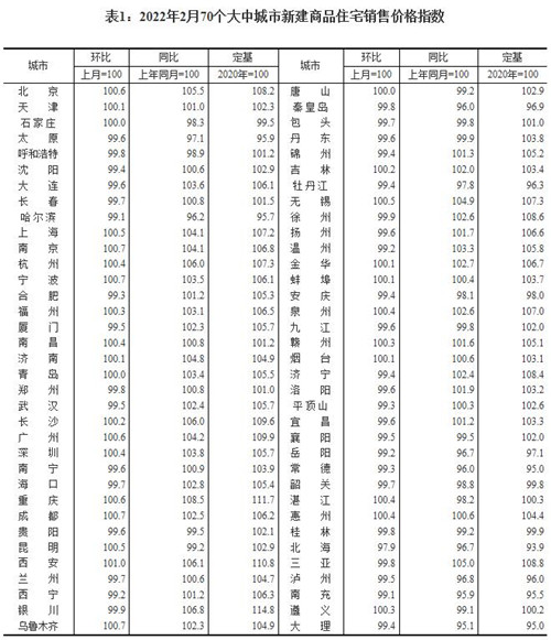 房訊網訊 3月16日,國家統計局發布2022年2月70個大中城市商品住宅銷售價格變動情況,國家統計局城市司首席統計師繩國慶解讀表示,2月份,70個大中城市中,一線城市新建商品住宅和二手住宅銷售價格環比上漲,二三線城市環比持平或下降。