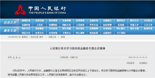 房訊網(wǎng)訊 3月16日中午,人民銀行行長、金融委辦公室主任易綱主持召開會議,傳達學習國務院金融委第51次專題會議精神,研究部署人民銀行系統(tǒng)貫徹落實工作。