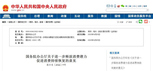 國務院辦公廳關于進一步釋放消費潛力促進消費持續恢復的意見