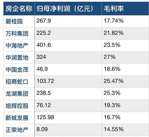 國金證券研報統計數據顯示,從3月以來房企發布的2021年業績公告看,平均毛利率為18.74%,平均凈利潤率為8.21%。