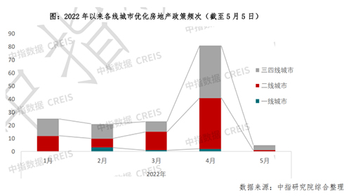 受國內疫情反復等因素影響,4月份樓市小陽春未至,五一假期銷售維持低迷。面對冷清的市場行情,各地因城施策優化樓市調控的力度和頻次明顯加快,更多熱點城市加入了放寬“三限”(限購、限售、限貸)的行列。