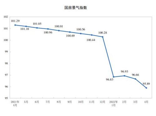 4月份,房地產開發景氣指數(簡稱“國房景氣指數”)為95.89。