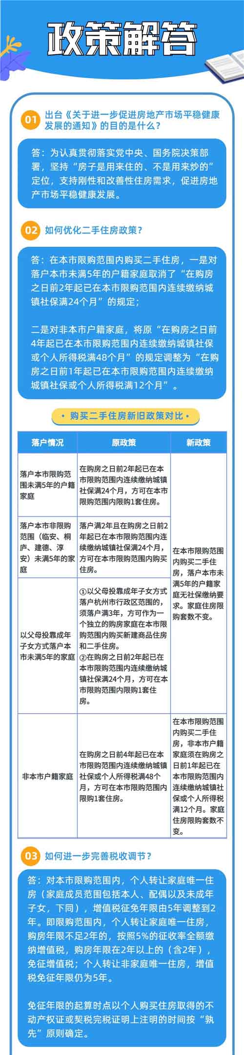 為認真貫徹落實黨中央、國務院決策部署,堅持“房子是用來住的、不是用來炒的”定位,支持剛性和改善型住房需求,杭州市房地產市場平穩健康發展領導小組辦公室發布《關于進一步促進房地產市場平穩健康發展的通知》(以下簡稱《通知》),從優化二手住房交易政策、完善稅收調節、更好滿足三孩家庭購房需求等方面進一步完善房地產市場調控。