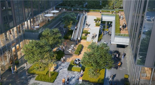 項目規劃有1.2平米商業配套,采用雙首層設置,并通過連廊與中海環宇薈連通,共同構成3.4萬平米商業中心,并匯聚餐飲、休閑、購物等多元業態,營造上樓辦公樓棟悅活的都市辦公體驗。
