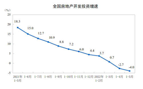 1—5月份,全國房地產開發投資52134億元,同比下降4.0%;其中,住宅投資39521億元,下降3.0%。
