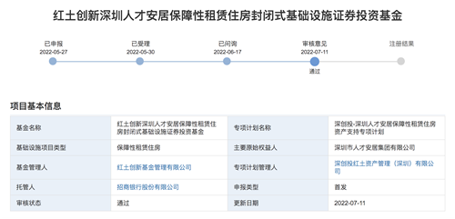 按照深交所公開的信息,此次獲得通過的紅土創新深圳人才安居保障性租賃住房封閉式基礎設施證券投資基金的主要原始權益人為深圳市人才安居集團有限公司,基金管理人為紅土創新基金管理有限公司,專項計劃管理人為深創投紅土資產管理(深圳)有限公司,專項計劃名稱為“深創投-深圳人才安居保障性租賃住房資產支持專項計劃”。