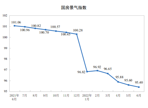6月份,房地產(chǎn)開發(fā)景氣指數(shù)(簡(jiǎn)稱“國(guó)房景氣指數(shù)”)為95.40。