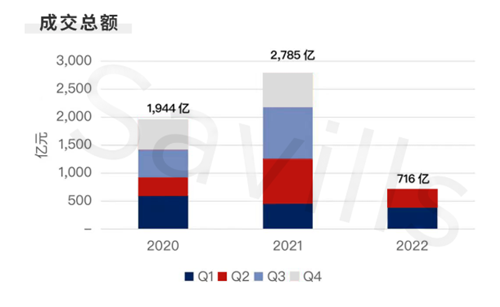 第一太平戴維斯近日發(fā)布2022上半年中國大宗交易市場回顧和展望指出,受疫情反復尤其是一線城市輪番封控影響,二季度投資市場整體活躍度減弱,導致上半年成交量表現平淡。數據顯示,上半年全國大宗交易成交總金額716億元,遠遜于去年同期,較疫情最初爆發(fā)的2020年也有所下降。