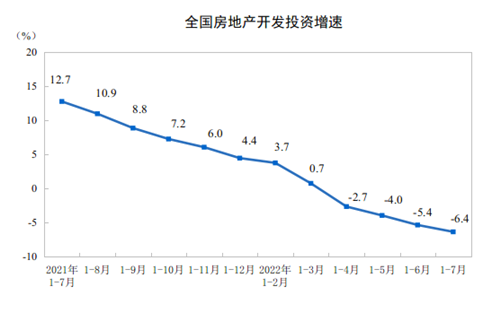 1—7月份,全國房地產(chǎn)開發(fā)投資79462億元,同比下降6.4%;其中,住宅投資60238億元,下降5.8%。