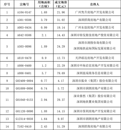 本批次地塊總價最高的龍華區(qū)民治街道A806-0401 地塊起始總價為79.69億元,由華潤置地 (01109.HK)旗下的深圳昆瑞商務(wù)信息有限公司以底價競得。