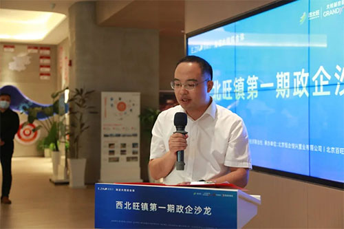 隨后,多家企業負責人介紹了本公司重點項目建設進展,中關村銀行介紹了惠企政策。西北旺鎮聯社負責的“一鎮一園”項目,百旺豐弘負責的海淀大悅綜合體項目、恒合悅興負責的智慧谷項目、東北旺科發公司的鄉創中心等,都是西北旺鎮域內未來發展的重點項目,建成后將為西北旺鎮的創新發展起到積極的促進作用。