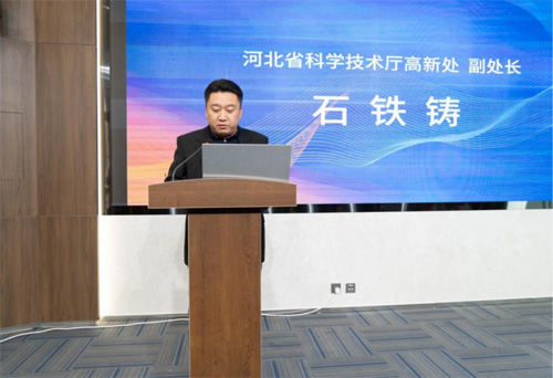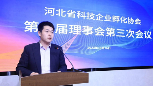 在2023河北省科技企業孵化協會年會上,石鐵鑄副處長為大會致辭,李靖秘書長和曾紅兵副秘書長分別發布了"河北省孵化載體發展報告"和"河北省雙創地圖"
