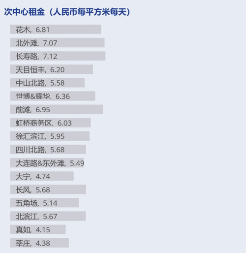 錄得全市平均租金持續環比下降2.2%至人民幣7.38元每平米每天,降幅加劇。市場需求的放緩導致業主方信心仍顯不足。
