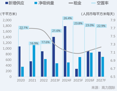 三季度,在企業降本增效成為主流的大環境下,租戶頻頻推遲租賃決策,導致市場去化壓力增大,預計2023年凈吸納量僅為2022年凈吸納量的2/3。