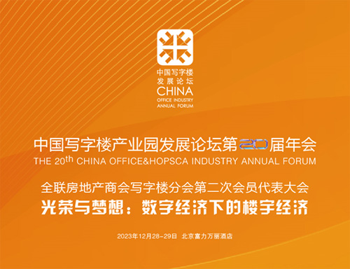 2023年12月28-29日,北京富力萬麗酒店,中國寫字樓產業園發展論壇第二十屆年會現場,1000位各界嘉賓與您共議"光榮與夢想:數字經濟下的樓宇經濟"。