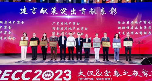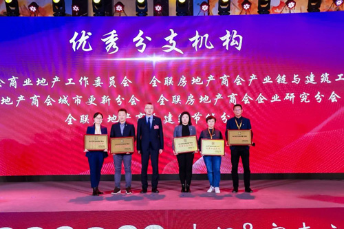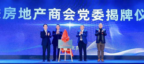 2023年,商會緊抓黨建工作與組織建設,團結行業力量,助力民營企業發展。在年會上,全國工商聯領導為全聯房地產商會第五屆理事會領導集體頒牌,并舉行了商會黨委揭牌儀式。
