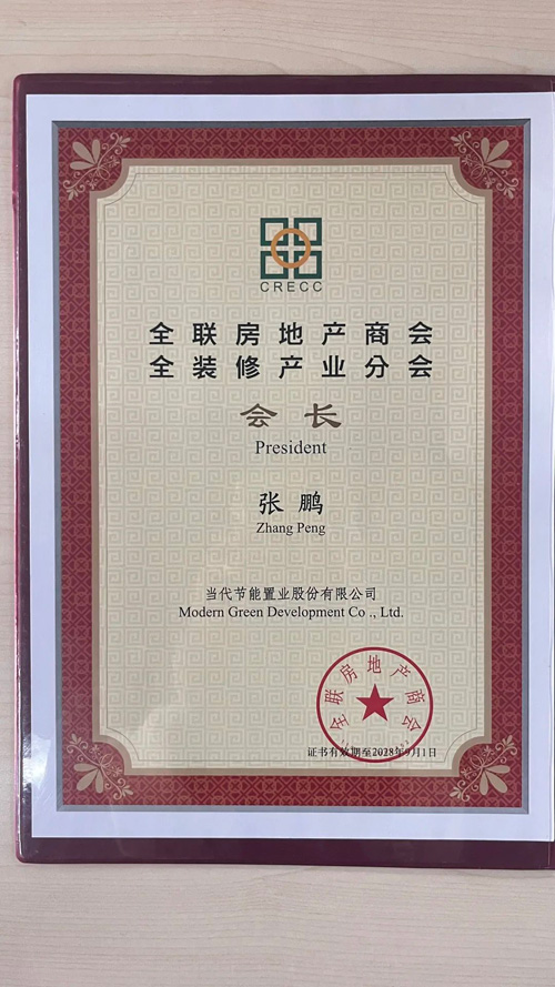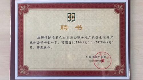 通過現場投票,授予當代節能置業股份有限公司為全聯房地產商會全裝修產業分會會長單位;當代置業董事會主席兼總裁張鵬先生擔任全聯房地產商會全裝修產業分會會長;中交海南區域總部執行總經理、中交海投總經理周濟先生擔任全聯房地產商會全裝修產業分會常務副會長;陳忠莉女士擔任全聯房地產商會全裝修產業分會秘書長;李季女士擔任全聯房地產商會全裝修產業分會常務副秘書長。全聯房地產商會秘書長趙正挺先生為第二屆理事會連任的會長單位、四位領導班子成員分別授牌、頒發證書和聘書。