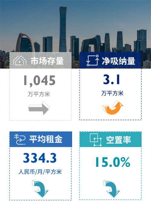 疫情復(fù)發(fā)等多重因素影響新項目推遲入市時間,得益于租戶活躍度的復(fù)蘇態(tài)勢,令北京甲級寫字樓市場空置率回落至15.0%;租戶穩(wěn)定性有所欠缺或面臨較大租賃壓力的業(yè)主為挽留和吸引客戶,繼續(xù)加大租金下調(diào)力度并在談判中保持靈活,使得全市甲級寫字樓市場平均租金進一步下探,錄得334.3元每平方米每月。