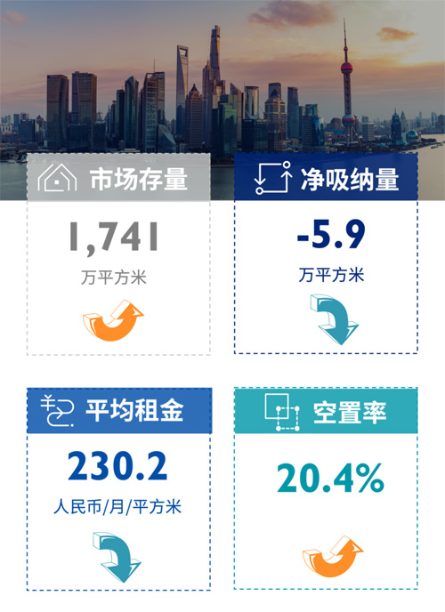 由于供應端持續放量及租賃市場需求疲軟,全市甲級寫字樓市場空置率上揚至20.4%;面對市場商務活動受制于本季度疫情封控,項目去化壓力持續增加,大部分項目業主積極采取以價換量、提供免租期及定制裝修等租金競爭策略,使上海甲級寫字樓市場平均租金繼續下探,環比上季度下滑0.9%。