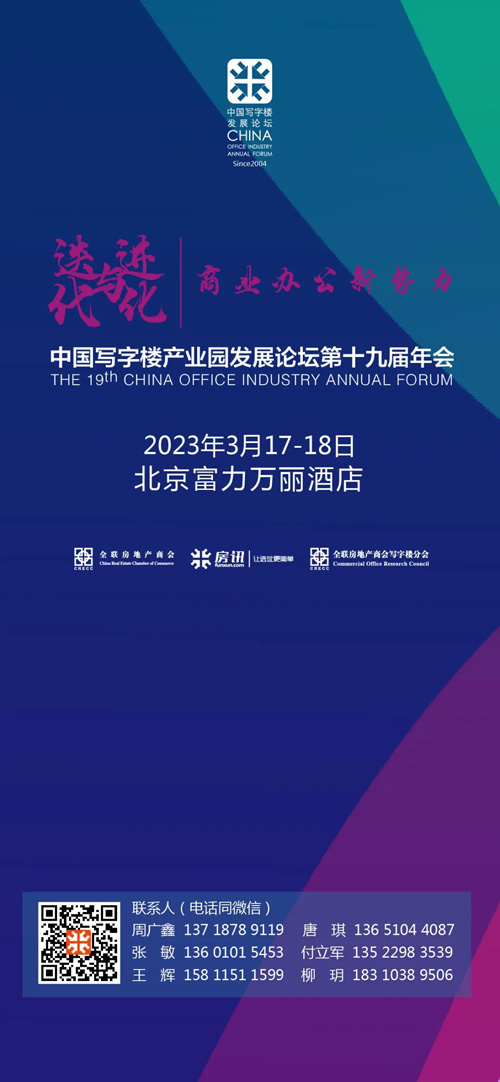 為探索中國(guó)商業(yè)地產(chǎn)的高質(zhì)量發(fā)展,探尋寫字樓產(chǎn)業(yè)園迭代與進(jìn)化的新路徑,2023年3月,中國(guó)寫字樓產(chǎn)業(yè)園發(fā)展論壇第十九屆年會(huì)將在北京富力萬麗酒店盛大舉行,主題為"迭代與進(jìn)化:商業(yè)辦公新勢(shì)力"。