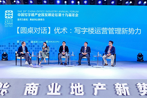 如何通過擁抱新技術、新模式、創新應用場景等方式來最大化地挖掘項目潛在價值,進而提升產品能力、品牌能力、運營能力從而提升融資能力?在寫字樓運營管理新勢力為主題的圓桌對話環節,特邀IP Global中國區首席經濟學家柏文喜主持,北京中海地產商業管理公司副總經理張存理、中國金茂華北區商業寫字樓中心副總經理袁瑋珂、銀泰基業有限公司副總裁王子銘先生、富華置地市場營銷總監陳堃就寫字樓企業生態圈、政企合作、產業導入、資源鏈接進行了熱烈的交流和討論。