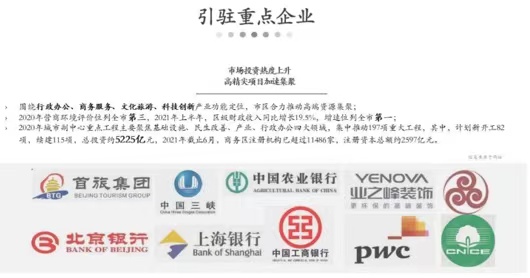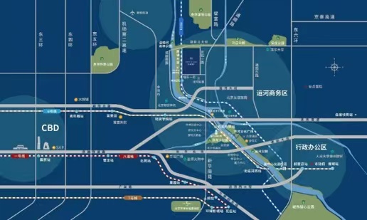 萬達廣場、愛琴海、遠洋樂堤港、希爾頓酒店、富華陽光酒店、長安俱樂部等近在咫尺…… 目前運河商務區已吸引了包括三峽集團15家子公司、北京綠色金融和可持續發展研究院、北京綠色交易所、華夏理財、路孚特、上田八木、華夏銀行副中心分行、他山智石等多家中外總部、金融和科技類企業入駐。