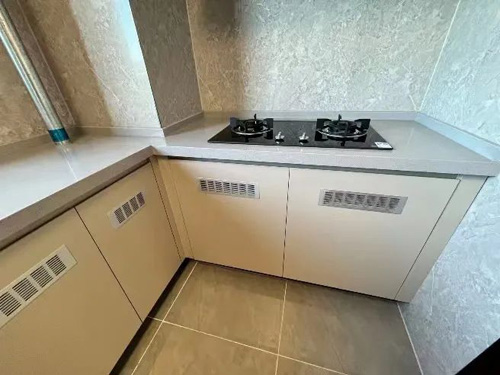 為降低廚房做飯帶來的"串味"問題,項目在廚房設置可控型的風閥,在開啟抽油煙機的同時開啟風閥,將新鮮空氣引入室內。避免有氣味、顆粒物等散發源中的污染物串通到室內,同時有效保障廚房的排風要求,防止油煙擴散到室內其他空間。