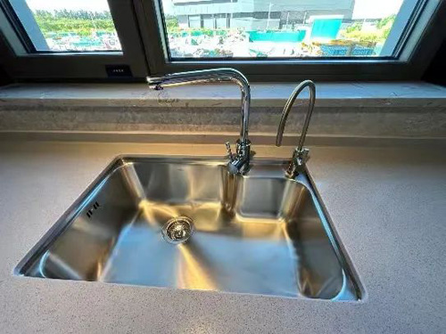 潔凈的水是健康生活的重要一環,項目在每戶廚房設置三級過濾的反滲透凈化裝置,居民在家中,只要打開廚房的水龍頭,就可以飲用到清潔的純凈水。不僅如此,項目設置了水質在線監測裝置,監測的數據可通過小區電子屏幕或綠城APP推送給居民,讓居民可以很輕松的了解到家內的水質情況。