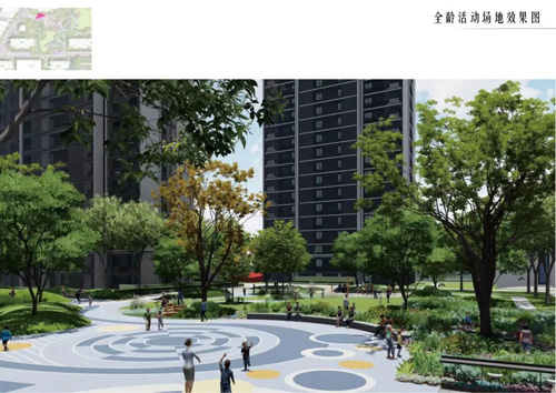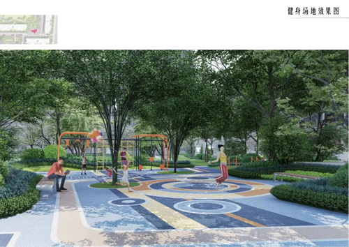 項目場地依照綠城多年研究成果,配置了促進居民室外交流的鄰里客廳、設置遮陰和座椅的適老活動場地、適合兒童玩耍的親子樂園、適合居民親自參與耕作的室外菜園、適合健身運動的健身場地,設有健身設施和健身步道,全面提升項目的運動與人文屬性。將項目打造成一個共享、活力和交融的健康樂園。