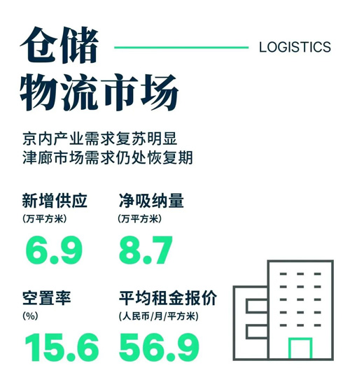 天津在薊州竣工第一個高標(biāo)倉儲項目,帶來16.5萬平方米的新增供應(yīng)。市場新增需求持續(xù)低迷,疊加環(huán)京供應(yīng)持續(xù)增加,以成本為導(dǎo)向的搬遷活動成為近期租賃成交主力,主要體現(xiàn)在消費品及第三方物流,兩者各占據(jù)新租總面積的40%。