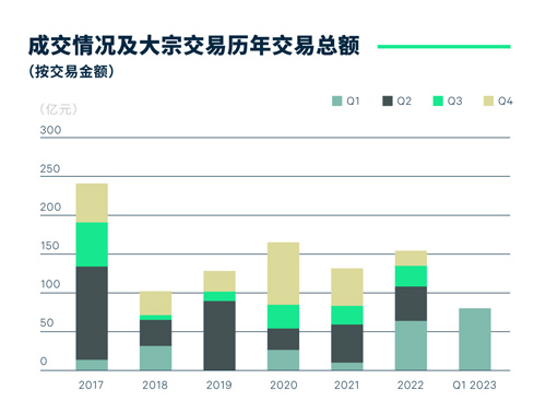廣州第一季度共錄得五宗大宗物業(yè)成交,總成交金額近80億元人民幣,同比增長(zhǎng)25%,并超過了2022年全年總成交金額的50%。超過九成的成交金額來自四宗寫字樓成交,分布在各區(qū),賣家類型均為房地產(chǎn)企業(yè)。其中科學(xué)城的爛尾項(xiàng)目由國企以13.1億元的底價(jià)拍得;琶洲的整棟寫字樓也被國企購入;廣州國際金融城和魚珠物業(yè)的買方則是以自用為主要需求的企業(yè)買家。最后,本季度錄得一宗位于番禺區(qū)的養(yǎng)老社區(qū)成交,成交金額比2020年的關(guān)聯(lián)交易增長(zhǎng)了42%。