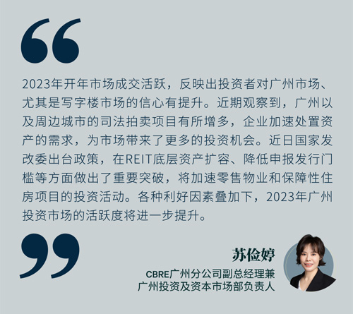 另外,倉儲(chǔ)物流設(shè)施持續(xù)受到關(guān)注,但近期廣州及周邊城市的需求有所放緩,能提供可預(yù)計(jì)、穩(wěn)定現(xiàn)金流的項(xiàng)目更受投資者的青睞。同時(shí),被列入公募REITs領(lǐng)域的商務(wù)園區(qū)物業(yè)繼續(xù)成為熱門的投資資產(chǎn)類別,投資者尤其看重優(yōu)質(zhì)項(xiàng)目集中的天河智慧城和科學(xué)城等區(qū)域。