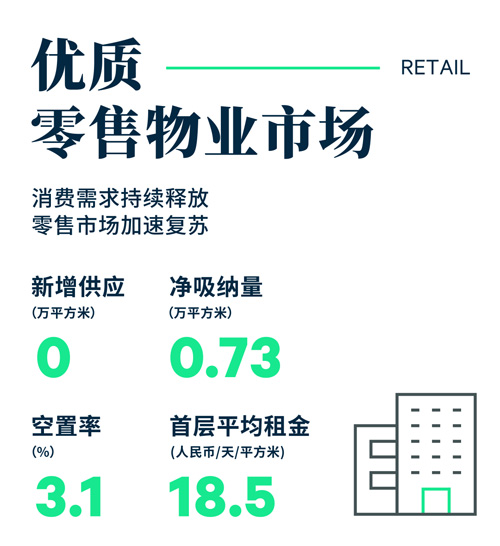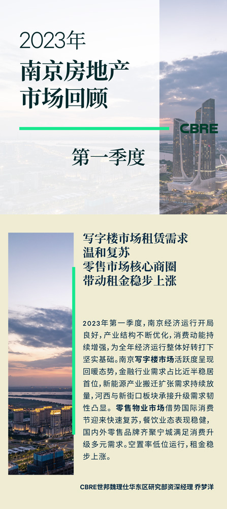 2023年第一季度,南京零售物業市場無新項目交付。開年以來,防疫限制的解除帶動消費信心回暖,1至2月,全市重點商圈客流量與營業額相比去年同期均呈兩位數增長,時至三月,南京國際消費節盛大啟幕,新街口商圈打造國際美妝節釋放“美麗經濟”新動能,夫子廟板塊借文旅消費復蘇之勢為游客帶來消費新體驗,各大商圈營造特色消費場景以提振消費需求持續釋放,零售市場加快復蘇,全市空置率低位運行,本季度環比下調0.1個百分點至3.1%,凈吸納量為0.73萬平方米。