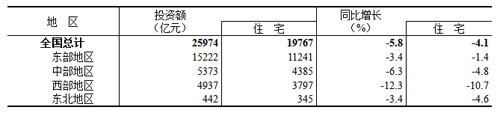 1—3月份,全國房地產開發投資25974億元,同比下降5.8%;其中,住宅投資19767億元,下降4.1%。