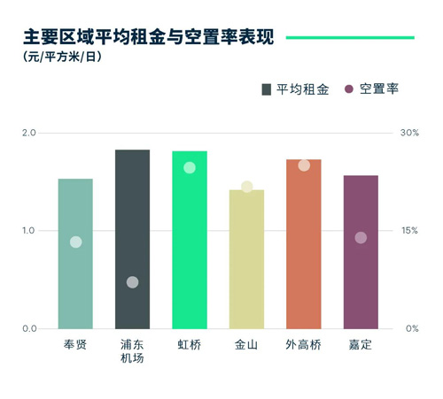 租金方面,去化優先的策略下,新增供應體量相對高的子市場如青浦、金山租金保持平穩,多數子市場相比去年同期漲幅收窄,全市平均租金環比上漲0.6%至每月每平方米49.8元。