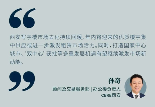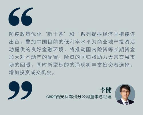 2023年第一季度西安大宗交易市場錄得一筆大宗成交,市場標的愈加多元。目前,雖具備穩定的投資回報及良好升值空間的寫字樓仍是最受歡迎的投資標的,但隨著西安文旅市場的全面復蘇,酒店等新興地產獲得更多關注。同時,隨著近年來西安保障性租賃住房建設進程的加速,政策性住房專營企業在市場上愈加活躍。公寓、租賃住宅等另類資產獲得更多投資機會。隨著資本持續聚焦新經濟地產,標的的多元發展將推動西安大宗物業交易市場活躍度快速提升。