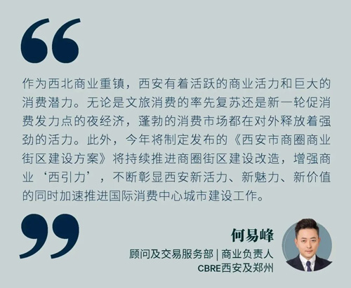 展望2023,隨著西安文旅市場的率先復蘇,部分如大悅城、賽格國際購物中心等靠近景區的項目已出現客流的明顯增加。同時,西安零售市場將在本年度迎來更多形態獨特的零售項目,如融合街區公園的集樂里,城市生態商業體南飛鴻樂薈中心、大茂城等優質項目的入市將進一步推動創新業態和場景的發展,支撐消費市場加速回暖,西安零售物業市場有望迎來新的發展機遇。