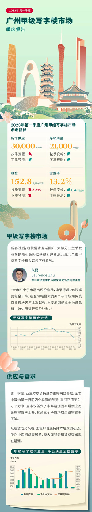 [提要]萊坊發(fā)布2023年第一季度《廣州甲級寫字樓市場報告》