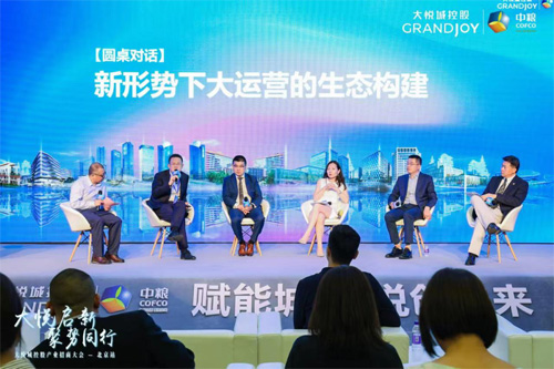 就下半年市場各參與方如何應對新形勢下大運營的生態構建,全聯房地產商會副秘書長劉凱、高力國際華北區總經理嚴區海、戴德梁行中國資本市場總經理劉兵、世華嘉潤總經理李芳月、大悅城控股物業管理部副總經理汪軍、大悅城控股產業與寫字樓管理部副總經理聶志毅六位業內專業人士,在圓桌對話環節展開了深入討論。