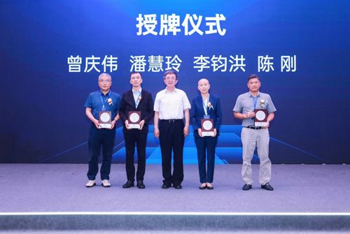 在接下來的授牌儀式上,倪江波司長上臺為全聯(lián)房地產(chǎn)商會節(jié)能門窗分會會長、軒尼斯實(shí)業(yè)有限公司董事長曾慶偉,全聯(lián)房地產(chǎn)商會節(jié)能門窗分會執(zhí)行會長潘慧玲,全聯(lián)房地產(chǎn)商會節(jié)能門窗分會榮譽(yù)會長、廣東省門業(yè)協(xié)會會長李鈞洪,全聯(lián)房地產(chǎn)商會節(jié)能門窗分會榮譽(yù)會長、四川省門窗行業(yè)協(xié)會會長陳剛授牌。