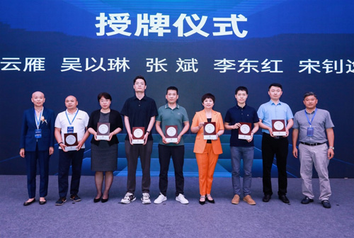 全聯(lián)房地產(chǎn)商會秦晶副秘書長和邊東昱副秘書長為全聯(lián)房地產(chǎn)商會節(jié)能門窗分會會監(jiān)事長、亞薩合萊國強(qiáng)(山東)五金科技有限公司總經(jīng)理李敬芳和為全聯(lián)房地產(chǎn)商會節(jié)能門窗分會執(zhí)行監(jiān)事長、天津新艾隆科技有限公司董事長史宏偉授牌。