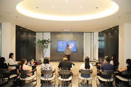進入項目推介環節,來賓們詳細深入地了解了金力集團的歷程背景,麗金智地中心的初心愿景,以及“后疫情時代的健康管理大師、7A寫字樓新標桿、智慧物聯一體化領創者、以人為本的辦公新形態”等4個基本點和硬件運營方面的八大亮點。