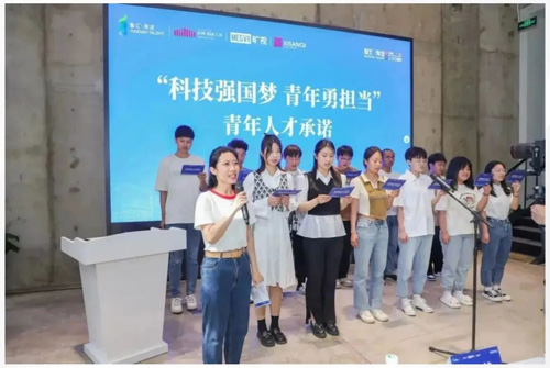 活動(dòng)最后,西三旗區(qū)域大學(xué)青年學(xué)生代表及園區(qū)獨(dú)角獸企業(yè)代表們走上舞臺(tái),共同發(fā)出莊嚴(yán)承諾,堅(jiān)持科技創(chuàng)新,弘揚(yáng)科學(xué)家精神,團(tuán)結(jié)廣大科技工作者,為實(shí)現(xiàn)中國(guó)式現(xiàn)代化奮斗終身。